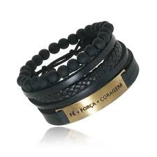 Pulseira em Couro com detalhes Dourado